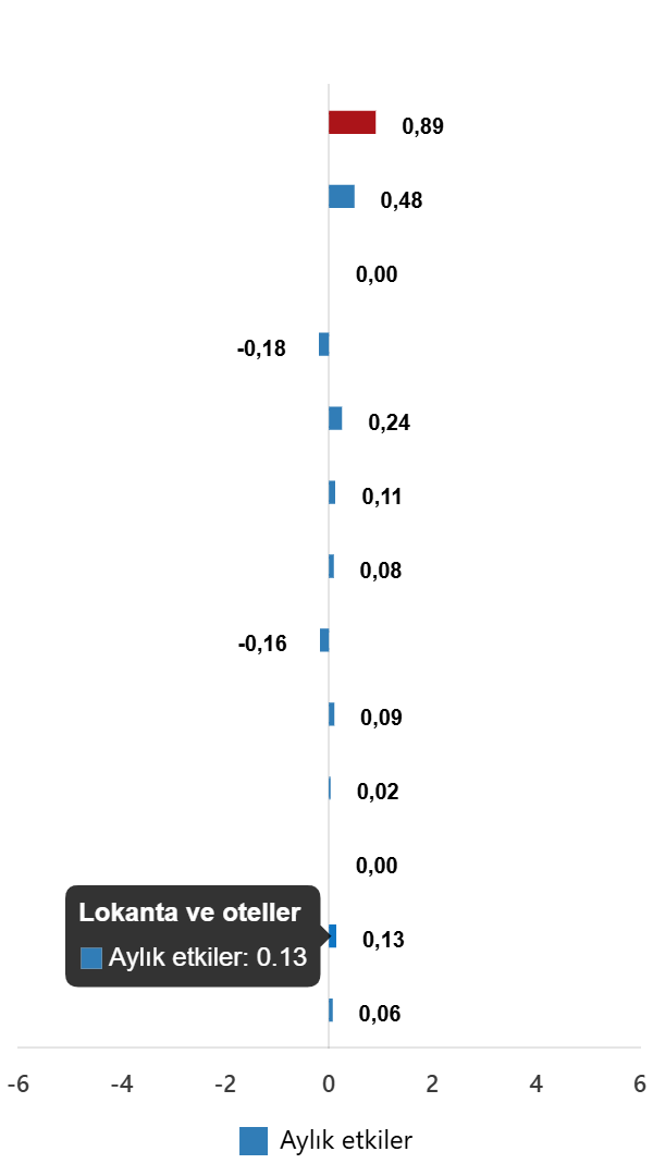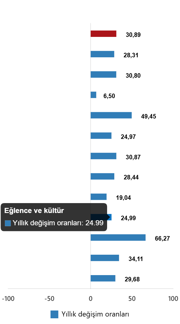 En yüksek yüke sahip 3 ana harcama kümesinin yıllık değişimleri; besin ve alkolsüz içeceklerde %28,31 artış, ulaştırmada %28,44 artış ve konutta %49,45 artış olarak gerçekleşti. İlgili ana kümelerin yıllık değişime olan tesirleri ise besin ve alkolsüz içeceklerde %7,07, ulaştırmada %4,36 ve konutta %7,52 oldu.