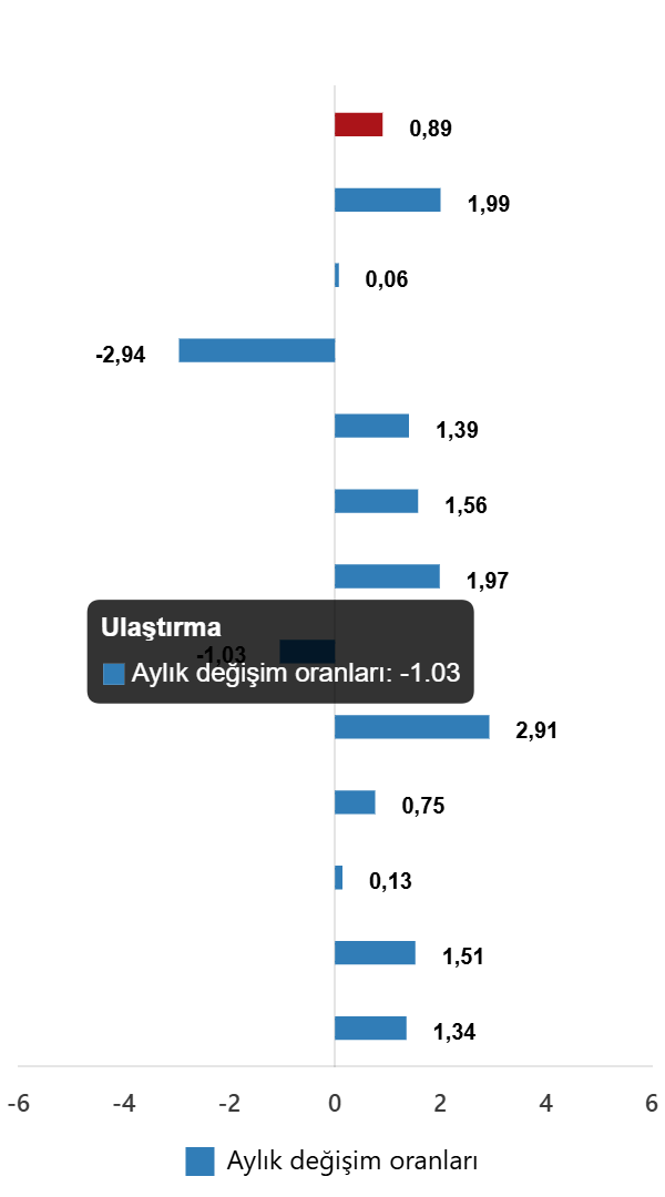 Bir evvelki aya nazaran değişim oranı 0,89 1,03 2,93